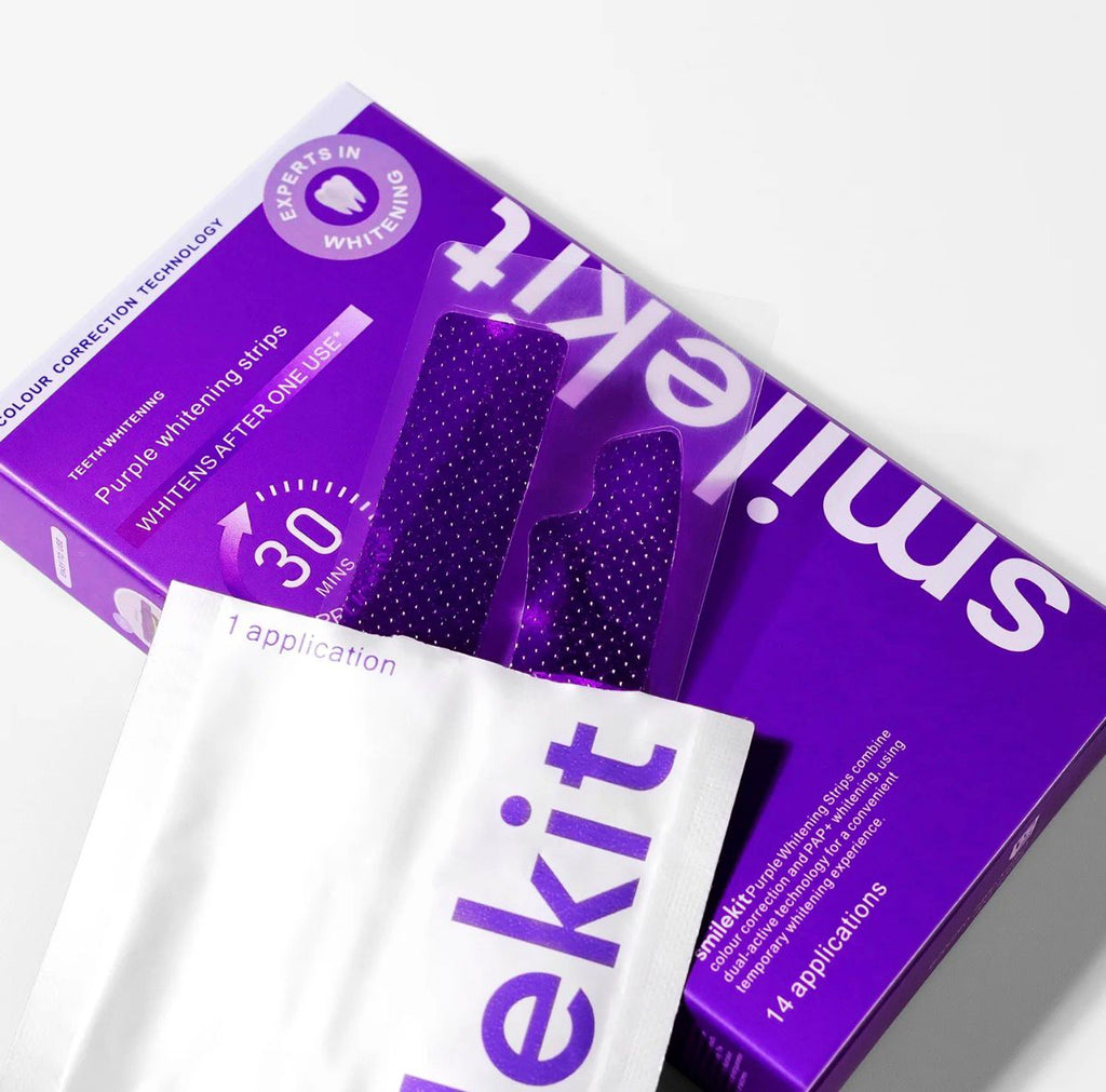 Entenda como o BrightSmile [V34]® funciona: O roxo é diretamente oposto ao amarelo no círculo cromático e, portanto, é sua cor complementar. Um PAP dual-active roxo solúvel em água é aplicado nos seus dentes para neutralizar quaisquer tons amarelados.
